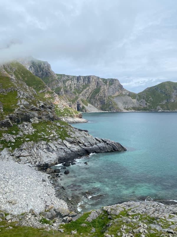 Nach einer längeren Pause ging es dann den ganzen Weg zurück. Die Küsten sind so schön hier und vor allem die weißen Strände mit dem klaren Meer. Nach 6,5 h hatten wir dann endlich den Camper erreicht. Kurze Pause und auf zum Skarvollsanden Badestrand. Hier konnten wir kurz baden. Das Wasser war zwar echt kalt, war aber erfrischend!